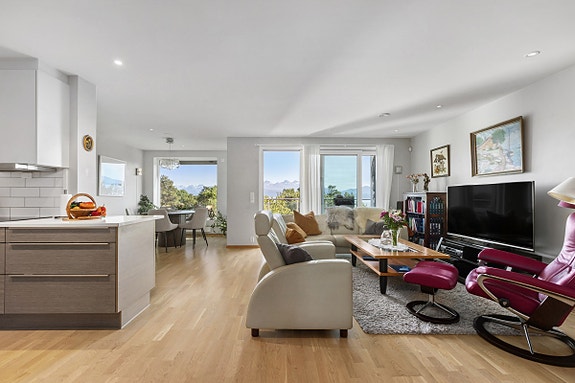 Innbydende 3-roms leilighet fra 2016 med livsløpsstandard | 2 bad | Garasje m. lader | Balkong med flott utsikt |