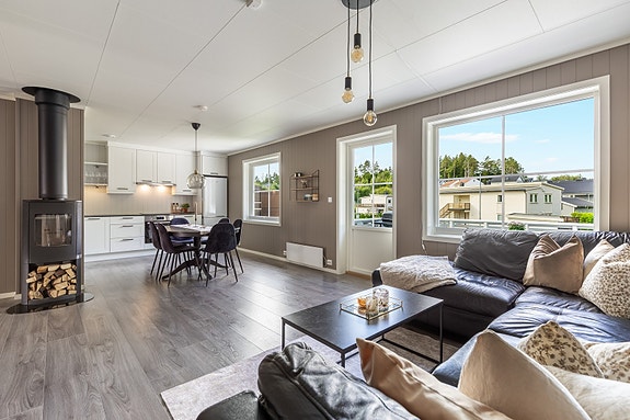 Store vindusflater som slipper inn rikelig med naturlig lys og skaper et godt bomiljø