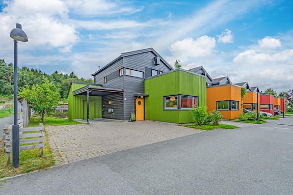 Her får du en moderne familiebolig lokalisert i utkanten av feltet med en fin fjordutsikt, og området er omkranset av store grønt- og friområder. Med endebeliggenhet får du i tillegg et langt større privat uteområde enn de fleste andre hus i feltet.