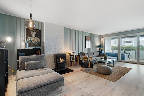 Pen & romslig 4-roms leilighet - Stor balkong med glimrende solforhold og direkte adkomst til fine grøntareal - Vedovn