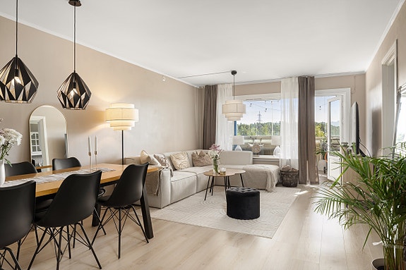 Stilsikker 3-roms med moderne preg og god beliggenhet på Haugsten