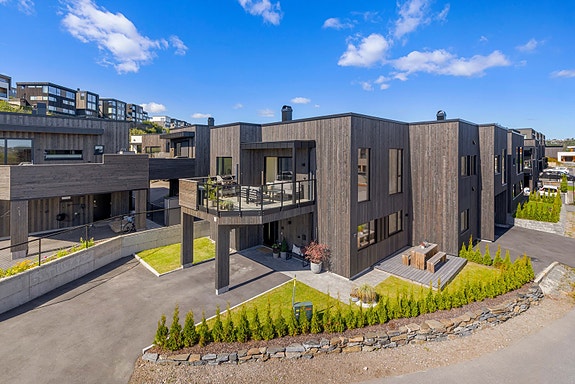 Justneshalvøya - Lekker enebolig i kjede med garasje og praktikantdel - takterrasse og flott utsikt - romslig tomt