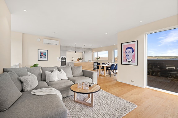 Moderne og innholdsrik familiebolig med praktikantdel, flott utsikt og barnevennlig beliggenhet på Justneshalvøya!