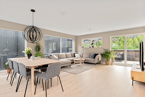 Lekker enebolig med flott utsikt og høy standard-Ny kledning-4 sov, 2 bad, 2 stuer-Takterrasse-Dobbel garasje-Solrikt