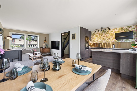 Svært innbydende enderekkehus | Nytt bad og kjøkken i 2022 | Solrik terrasse og hage | Garasje | Barnevennlig nabolag