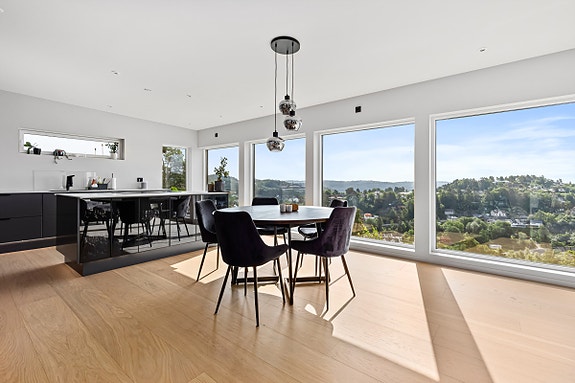 Stor og åpen løsning med store vindusflater mot en vanvittig flott utsikt!