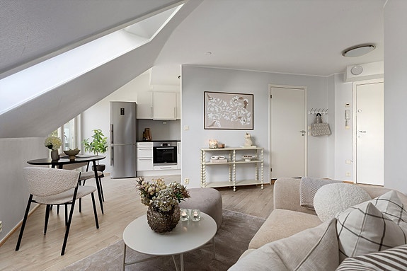 Dette er en moderne 2-roms toppleilighet i 5. etg med heis, beliggende meget sentralt på Bragernes med kort gangavstand til alle byens fasiliteter.