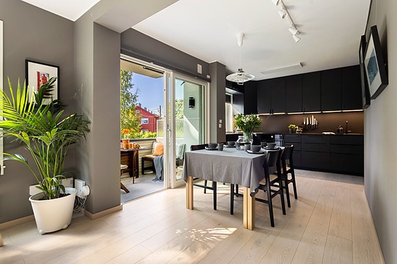 En lekker, gjennomgående 3-roms leilighet beliggende i et rolig, grønt og idyllisk nabolag på Lilleaker. I 2021 ble hele leiligheten revet ned til bærende konstruksjoner og gjenoppbygget med bl.a. nytt kjøkken og bad, og oppleves som lun, eksklusiv og harmonisk gjennom moderne farge- og materialvalg. Effektiv planløsning som består av en innbydende entré, stue med peisovn og utgang til en sydvendt balkong med gode solforhold og hyggelig utsyn, lekkert kjøkken med åpen løsning, to gode soverom, og et delikat flislagt bad.