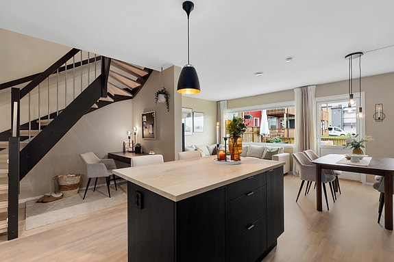 - Romslig stue- og kjøkkenløsning på til sammen 35,5 kvm.