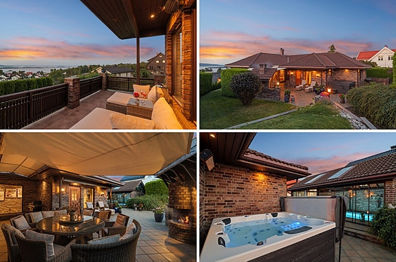 Unik mulighet! Enebolig med svømmebasseng og jacuzzi. Solrikt område med fantastisk sjøutsikt. Garasje. Kort vei til tog