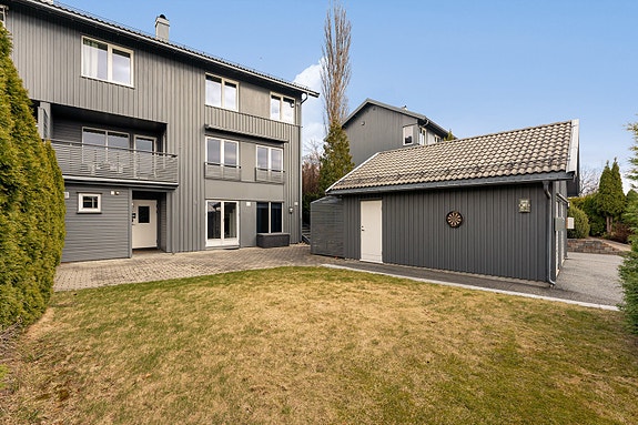 Stor 1/2 tomannsbolig m/ garasje|Blindvei|Terrasse og flat hage|4 soverom, 3 bad + vaskerom/wc|Utleiemulighet i u.etg