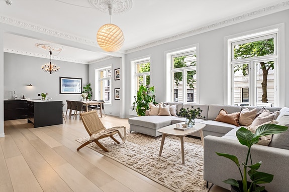 Klassisk 3-roms renovert med høy standard i 2019. Flotte detaljer, takhøyde 3,16m, peis, gulvvarme, 2bad, mulig 3sov.