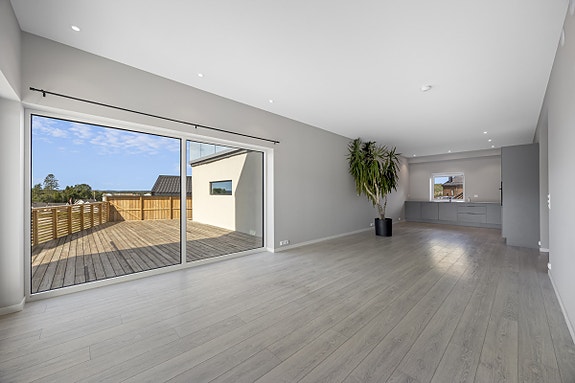 Lekker og stilfull leilighet med alt på en flate. Leiligheten har en solrik terrasse på ca. 55m². Det er betong i etasjeskillere og bygget som energieffektiv bolig. Inni leiligheten er det terskelfritt, balansert ventilasjon, takhøyde på 2,9 meter (stue/kjøkken) og mye mer. Boligen er nærmest lydtett med 40 cm mellom etasjene, og den er bygget med fokus på lite fremtidig vedlikehold. Leiligheten har en flott planløsning og inneholder: Entré, to soverom, teknisk rom/vaskerom med ekstra wc, bad, stue og kjøkken i åpen løsning. Mulighet for peisovn (pipe er montert). Alubeslåtte vinduer med solfilm (Nordan).