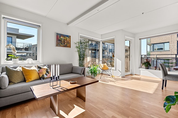 Lys og moderne 3(4)-roms topp og hjørneleilighet med solrik, sydvendt balkong.