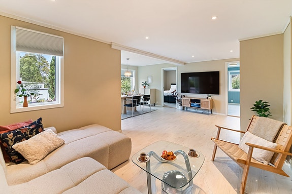 Nordvik har gleden av å presentere Kolbergveien 4a og denne romslige eierleiligheten, innredet m/bl.a. 3 soverom, stor stue, kjøkken og bad/wc/vaskerom. Foto: Fotograf Magik.