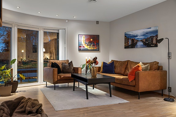 • Gjennomlys stue-/kjøkkenløsning på 38,6 m² med ypperlige møbleringsmuligheter.