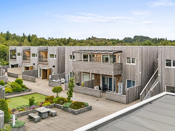 Velkommen til Handelstunet - To ferdigstilte nybygg på toppen av HSD senteret. Partisk innredet rekkehuset over to plan, som holder en gjennomgående høy og moderne standard. Alle boligene har egne parkeringsplasser i felles parkeringsanlegg/carport, i tillegg til egen utvendig bod på ca. 5kvm. Sameiet har en felles innendørs miljøstasjon for avfallshåndtering.