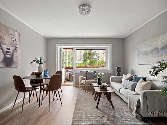 Attraktiv 3-roms leilighet på Lambertseter med flott intern beliggenhet i Nylænde borettslag, i en rolig og familievennlig blindgate. Leiligheten har en gjennomgående god standard og svært god planløsning. Her får du en romslig entré, stor stue med plass til sofagruppe og spisebord, 2 soverom og separat kjøkken.