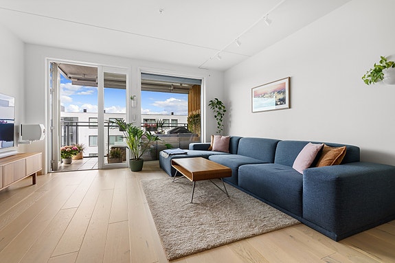 En gjennomgående og lekker 4-roms leilighet med familievennlig planløsning. Store vindusflater og generøs takhøyde gir en lys, luftig atmosfære og en følelse av ekstra romslighet. Nyt kveldssolen på balkongen, eller samle venner og familie på takterrassen med upåklagelig utsikt og flere sosiale soner.