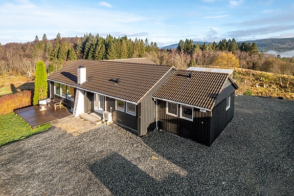 Innholdsrik og flott enebolig i fredelige omgivelser | Flotte uteområder og gode turmuligheter rett i nærheten | Garasje