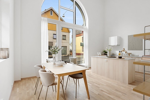 Velkommen til Kirkegata 179A - En ny og særpreget leilighet med nydelige arkitektoniske detaljer fra Gamle brannstasjonen. Leiligheten har flott planløsning innredet over to plan. Stue/kjøkken har ca. 5 meter takhøyde og stort vindu med utgang til egen "fortauskafè". Smakfullt og tidsriktig innredet med delikat kjøkken levert av Knapphus kjøkkensenter med integrerte hvitevarer og helfliset vaskerom/bad. Stor stue i 2. etasje med mulighet for å dele av til soverom nr. 2 om man ønsker det. Borettslaget har felles kaffebar, oppholdsrom, gjesteleilighet og ikke minst en vestvendt takterrasse hvor man kan se solen gå ned i havet. Avdragsfrihet i 10 år. Mulighet for nedbetale fellesgjeld. Ingen dokumentavgift ved kjøp. Mulighet for parkeringsplass i garasjeanlegget. Velkommen på visning!