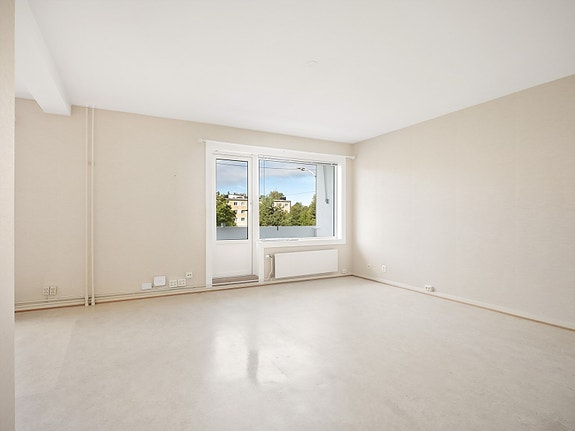 Store vindusflater slipper inn rikelig med dagslys i stuen. Utgang til balkong