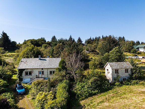 Et sjarmerende, nedlagt småbruk med stort potensial på Hella i Alver kommune. Eiendommen består av våningshus, løe, uthus og romslig naust ved Uthella kai, ca. 2 minutters kjøretur unna. Eiendommens areal er på ca. 102 mål og fordeler seg på 6 teiger, hvorav ca. 39 dekar er jordbruksareal og ca. 65 dekar er skog, utmark, tun, veier m.m. Bygningsmassen har eldre standard og det må påregnes oppgraderinger og renovering.