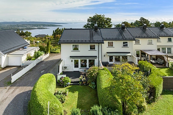 Et koselig rekkehus beliggende på Kleiverud med kort vei til skole og barnehage. Morgenkaffen kan nytes på den helt nye plattingen ved inngangspartiet som har godt med formiddagssol. Rett ved rekkehuset er det felles uteplass på høyden med fantastisk sjøutsikt. I entrè er det plass til yttertøy for store og små. Videre inn i 1 etasje finner du kjøkken, toalettrom og stue. Kjøkken har godt med skapplass og plass til spisegruppe. Stuen er romslig og har god plass for salong og spisestue. Vedovn og varmepumpe i stuen. Fra stuen er utgang til usjenert vestvendt terrasse og hage fra stuen. 2 etasje har 3 soverom. Flislagt bad/ vaskerom med varmekabler. Parkering i egen garasje i felles garasjerekke. Boligen har balansert ventilasjon for et godt innemiljø.
