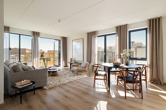 Velkommen til en lekker topp- og hjørneleilighet! Innflyttingsklar 4-roms med gode solforhold. Merk: bilde fra annen leilighet i samme prosjekt.