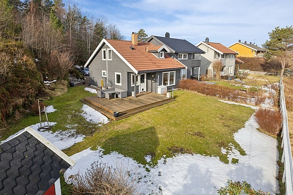 Innholdsrik enebolig med nytt tak, vinduer og kledning - Solrik tomt på ca. 1 mål - Garasje - Gåavstand til Tangvall