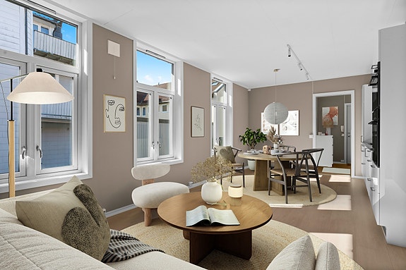 Lys og moderne leilighet i sentrum - fleksibel planløsning og fine uteområder. Gangavstand til alt du trenger.