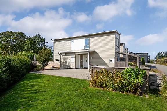 Pen og innholdsrik enebolig fra 2017 i et barnevennlig boligområde. Usjenerte uteplasser med svært gode solforhold.