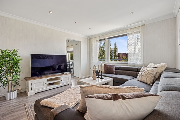 - Lys og romslig stue med utgang til solrik balkong