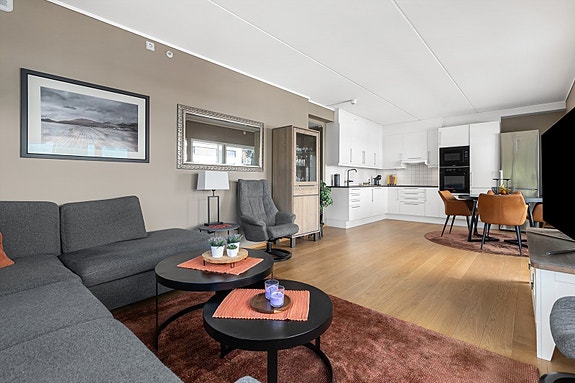 Dette er en nyere og tiltalende 3-roms hjørneleilighet som stod ferdig oppført i 2020. Leiligheten har en god planløsning bestående av en romslig entré, to luftige soverom, et pent flislagt baderom og en felles stue- og kjøkkenløsning med utgang til en flott balkong på ca. 11 m². Parkering gjøres trygt og enkelt på tilhørende garasjeplass i felles garasjekjeller. Det er ferdigmontert lader på plassen samt heisadkomst til leilighetsplan.