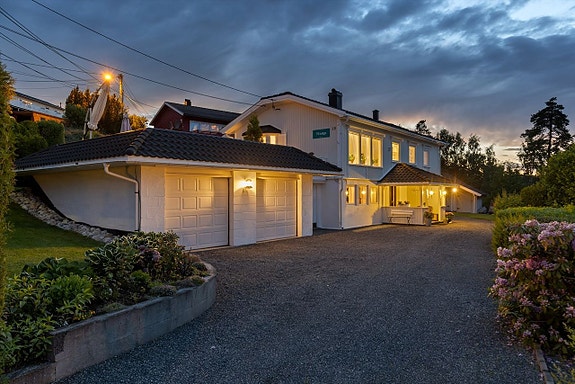 Enebolig, fantastisk sjøutsikt,solrik, 3 garasjer,stor terasse,solcellepanel,etc...