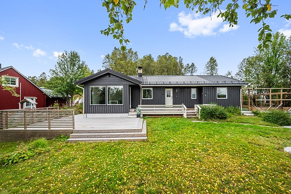 Enebolig med sentral og attraktiv beliggenhet på Glåmos. Nytt bad fra 2020. Romslig tomt.