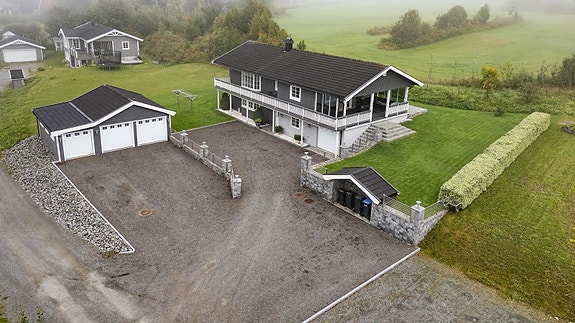 Stor garasje på eiendommen, og svært pene utearealer.