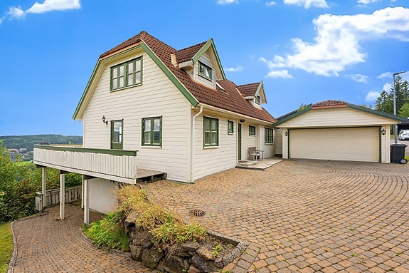 Romslig enebolig på 226 kvm i tillegg til dobbeltgarasje på 41 kvm med lagringsloft (42 kvm gulvflate)