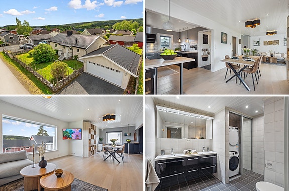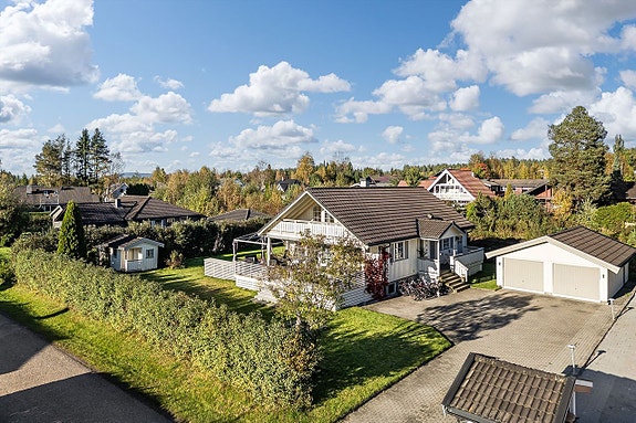 LånekalkulatorStor og godt ivaretatt enebolig med attraktiv beliggenhet inntil friområder i Stavåsen. Boligen har en innholdsrik planløsning over to plan og består i dag av en hoveddel og utleiedel i deler av kjelleretasjen. Totalt har boligen fem soverom, to bad, ekstra toalettrom, praktisk vaskerom og flere store oppholdsrom. Her har du alt du trenger i 1. etg. med alt på ett plan, som gjør dette til en praktisk bolig for alle aldersgrupper.