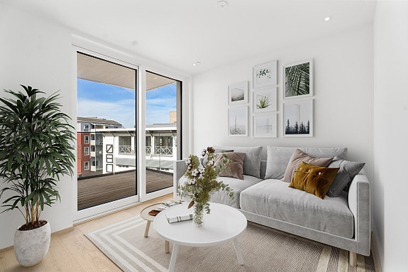 Velkommen til denne splitter nye leiligheten på Tangen 27. Her kan du flytte rett inn. ( Bildet er digitalt stylet/ møblert )