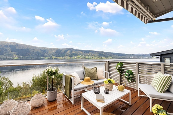 Solrikt med flott utsikt. Motorisert persienne kan benyttes hvis det skulle bli for mye sol eller ved nedbør.