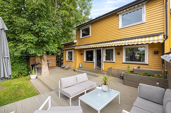 Her får du en romslig enderekkehus over tre plan med gjennomtenkt planløsning, store uteplasser og en solrik hage som innbyr til lek og sosiale sammenkomster. Boligen byr på lyse og luftige oppholdsrom, moderne kjøkken, tre gode soverom, to bad og praktisk vaskerom. I tillegg har kjelleren egen inngang og er innredet med stue, kjøkken, soverom og bad perfekt som ungdomsdel, for gjester eller mulig utleie.