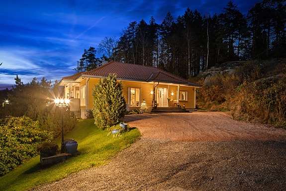 Boligen har en harmonisk og stilren kombinasjon av moderne og rustikke elementer. Utstrakt bruk av eik og naturstein gir et eksklusivt inntrykk. Store vinduer og generøs takhøyde skaper god romfølelse og en lun, behagelig atmosfære i boligen. Stille morgener kan nytes på terrassen mot skogen, og den store, vestvendte balkongen bader i sol utover kvelden. Den store tomten gir frihetsfølelse og innbyr til aktivitet og hageglede.