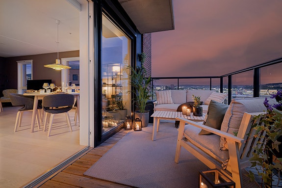 • Solrik vestvendt balkong
