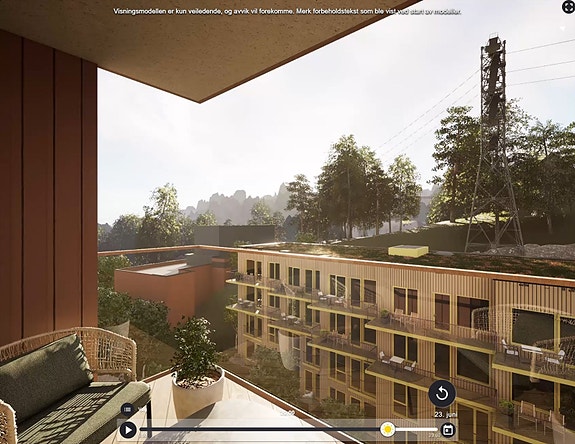 Fastpris: Ny 3-roms m/ca. 6,3 kvm nordvestvendt balkong i 6. etg. Inn mot gårdshage. Sikte på ot. høst 26.