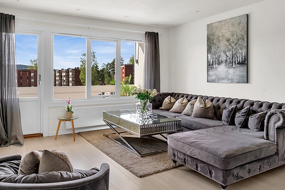 - Lys og gjennomgående 3-roms i høy 1. etasje