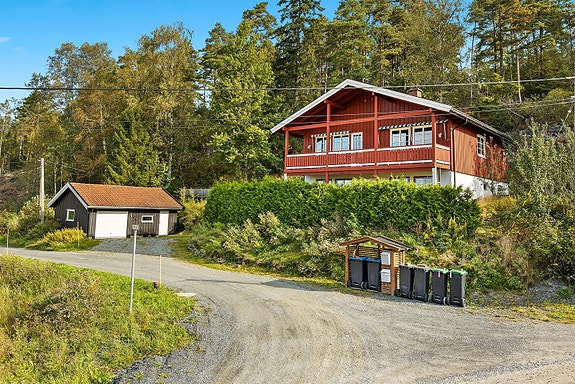 Boligen er på totalt 136 kvm. Garasje. Solrik tomt på 1220 kvm. Tomten er skrånende med flott utsikt over landbruk og kulturlandskap. Oppført i 1984.