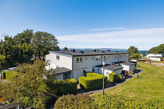 Enderekkehus med hage, terrasse og balkong i 2.etg. - Pent kjøkken, kort vei til strand - Gode solforhold - Utvendig bod