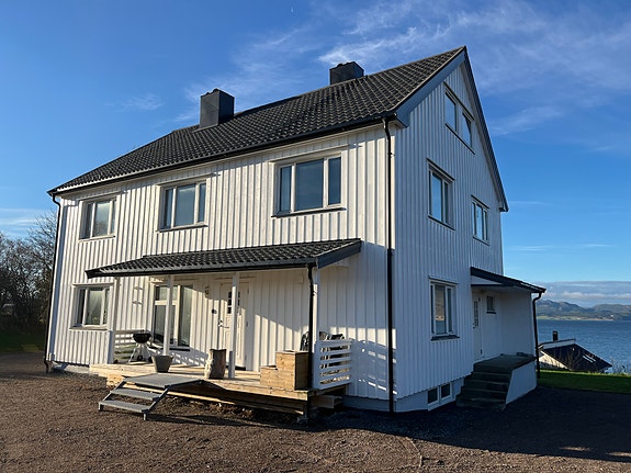 Stor enebolig som består av 2 stk separate leiligheter med separate innganger. Den ene leiligheten har 6 soverom, den andre har 3 soverom. Stor kjeller . Boligen er totalrenovert utvendig med nytt tak i 2024, skiftet bordkledning og etterisolert samt drenering. Tilkoblet offentlig avløp i 2024. Tomten er på ca 3 mål med strandlinje der det er mulig for å søke om nausttomt. Har også en egen tomt på samme adresse som er skillt ut med eget gnr og egen nausttomt som selges separat. Ta kontakt for nærmere opplysninger