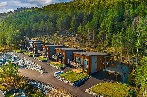 Det medfølger en parkeringsplass i carport og en utvendig parkeringsplass.
